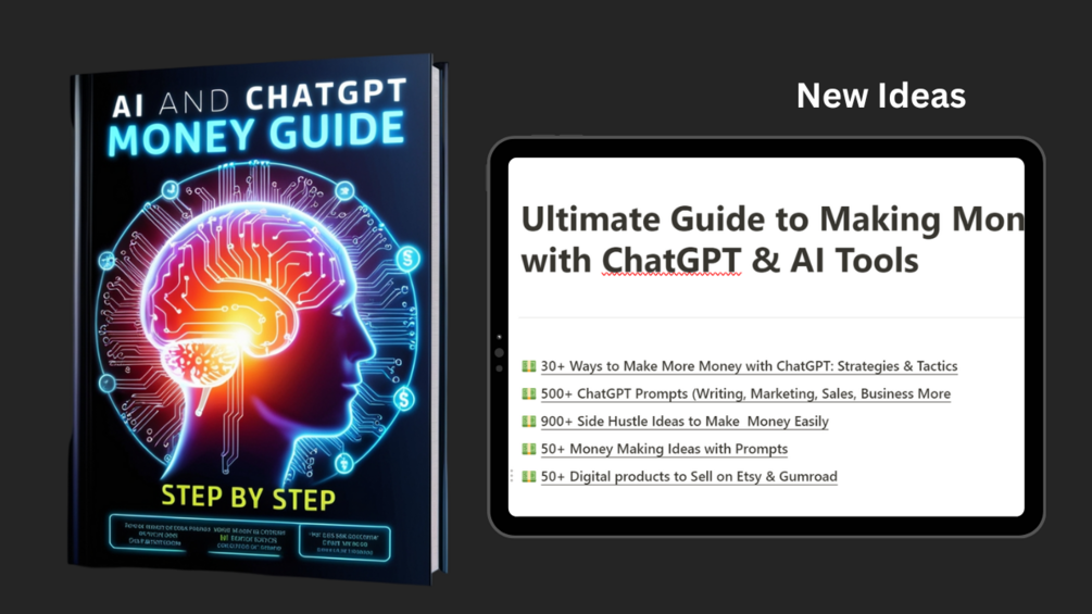 Take control of your financial future. Grab your copy of "1500+ ChatGPT Prompts to Make Money Ideas" today and start turning your dreams into reality!